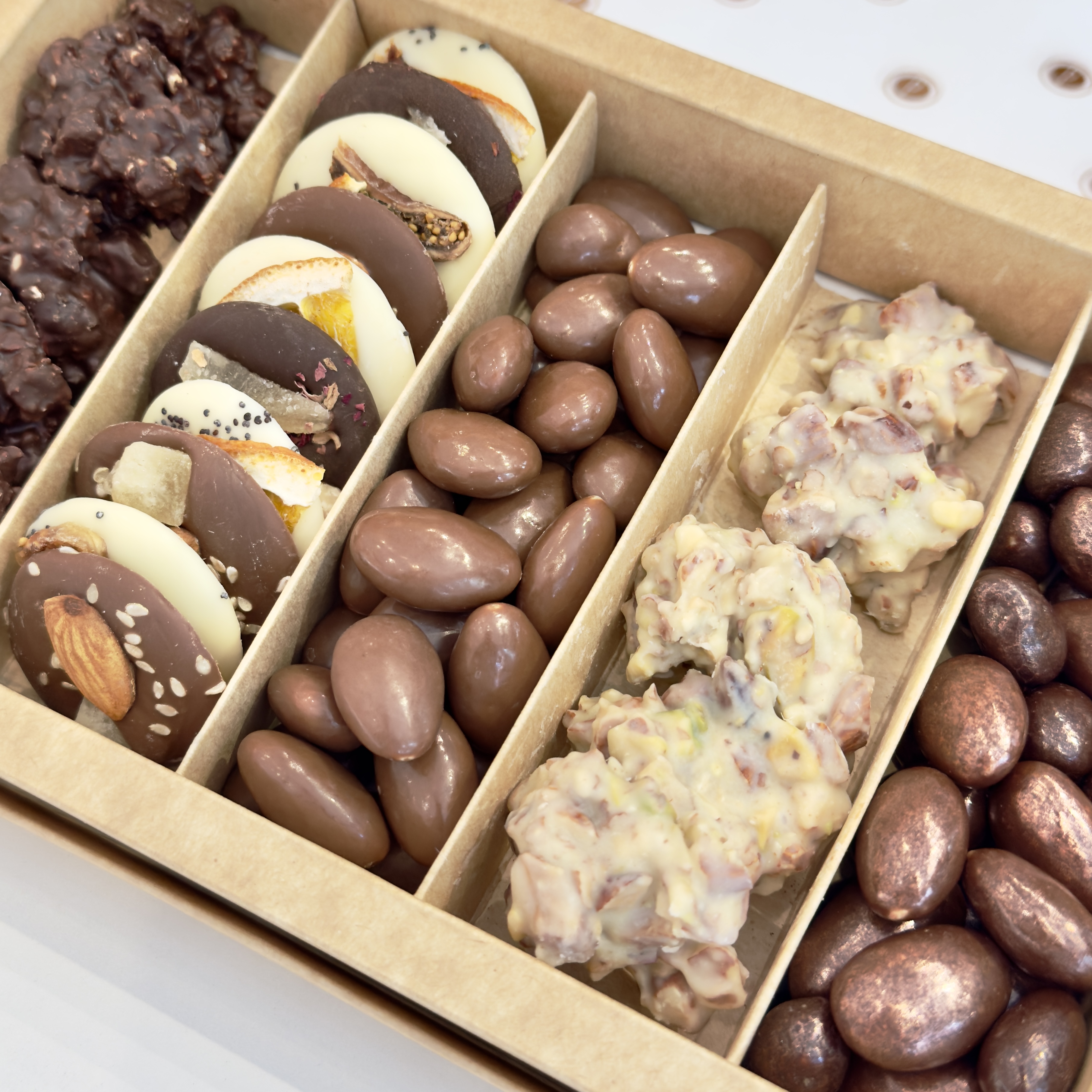 Caja grande de Trufas, Mendiants y Almendras con chocolate