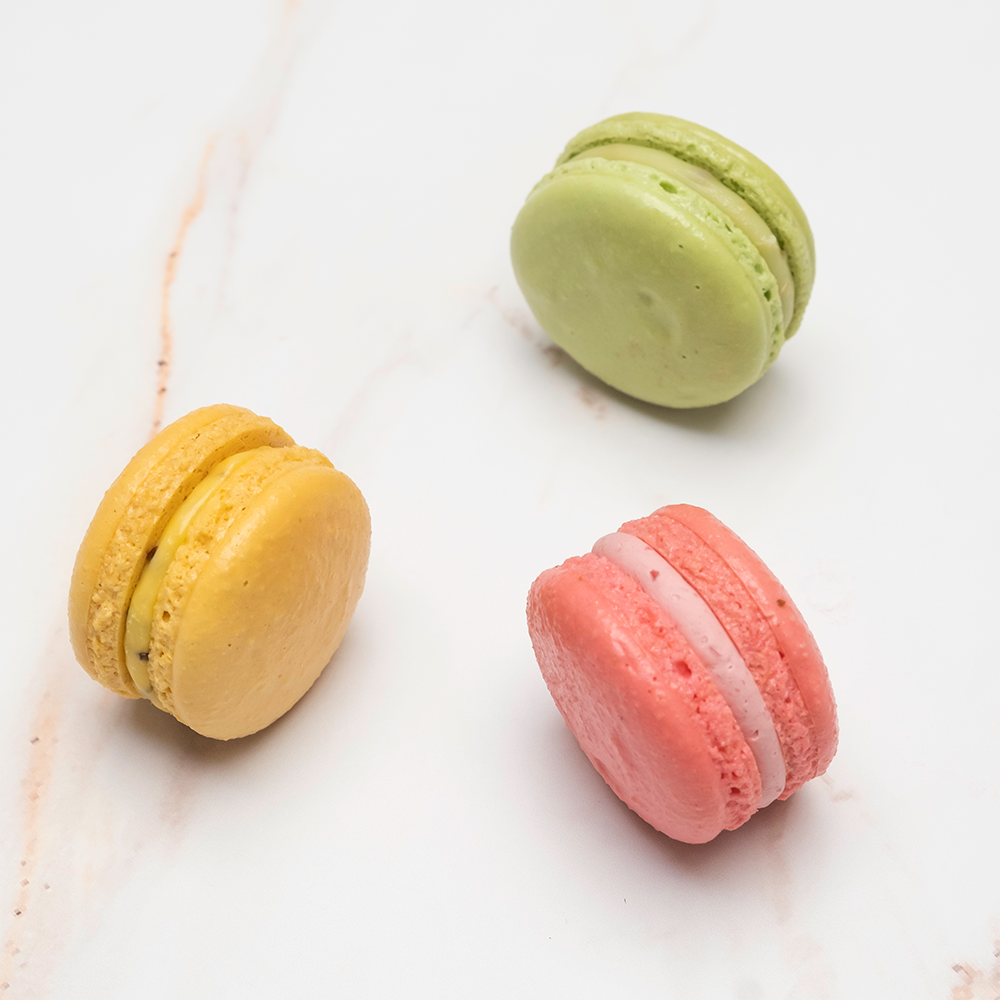 La caja de Macarons contiene 6 unidades de sabores: